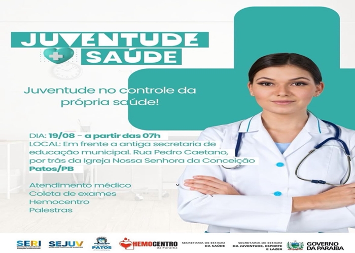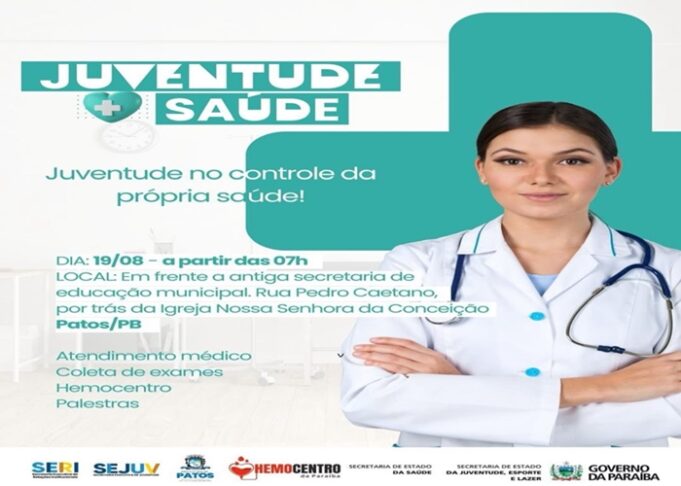 No próximo dia 19 de agosto, a partir das 7h da manhã, Patos será palco do Juventude + Saúde, uma ação voltada para o cuidado e a promoção da saúde da população jovem, dentro da programação do Agosto das Juventudes.