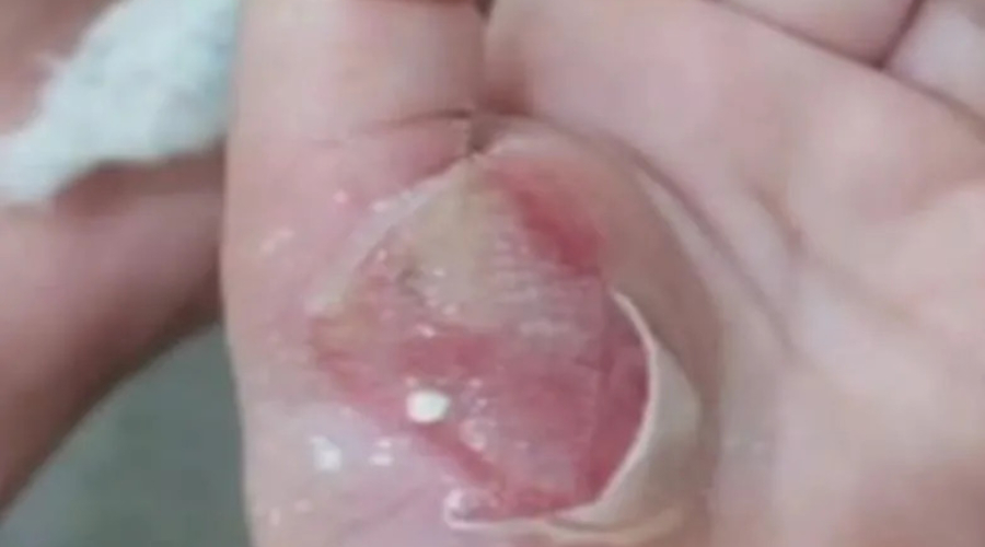 Ela também tinha uma queimadura na mão. A mãe firmou que a criança teria subido no fogão e colocado a mão no fogo, mas, segundo os conselheiros tutelares, isso seria impossível devido a idade da criança.