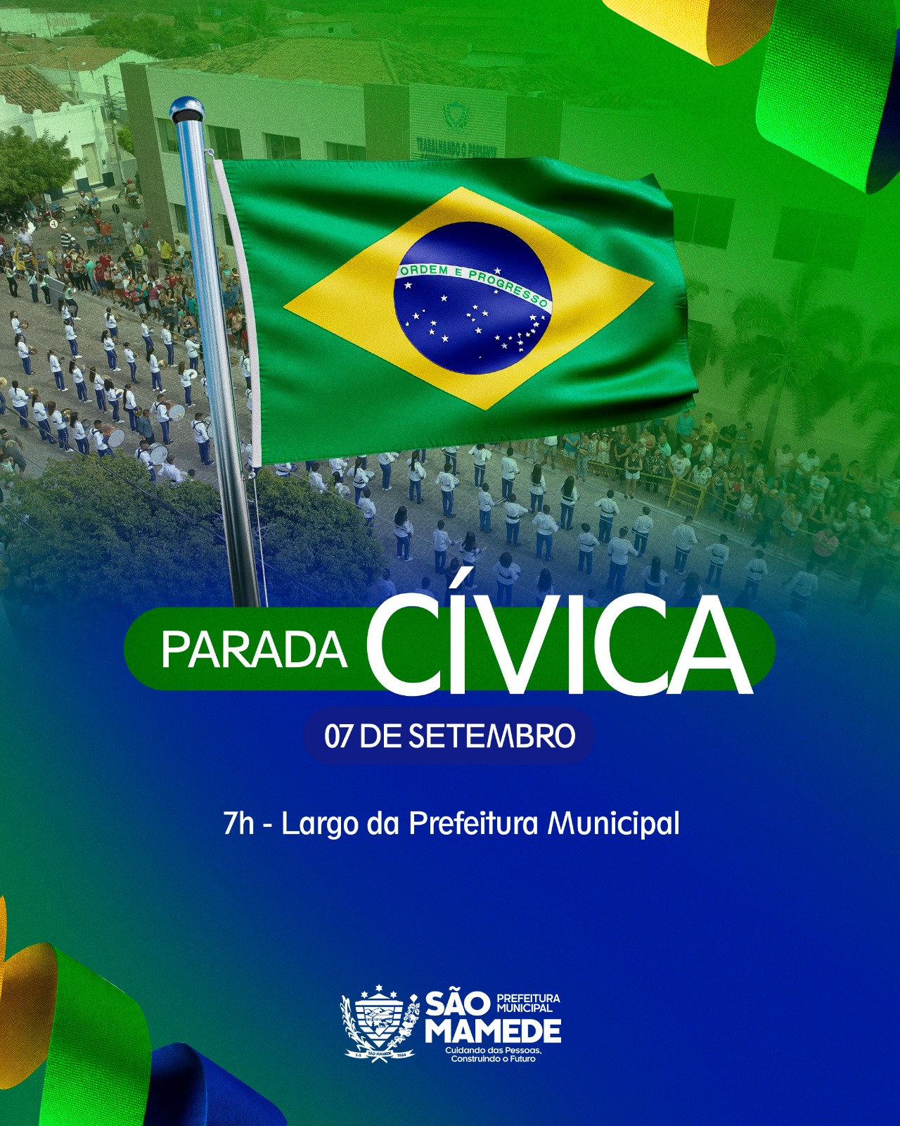 A Prefeitura de São Mamede, na Região Metropolitana de Patos, convida toda a população para a Parada Cívica em comemoração ao Dia da Independência do Brasil, que acontece neste domingo, 7 de setembro, às 7h, em frente à sede da Prefeitura.