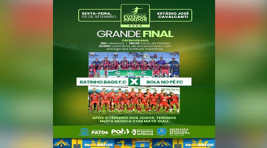 A Prefeitura de Patos, por meio da Secretaria Executiva de Esportes, convida toda a população a prestigiar a decisão e celebrar mais esse capítulo da história do futebol amador patoense.