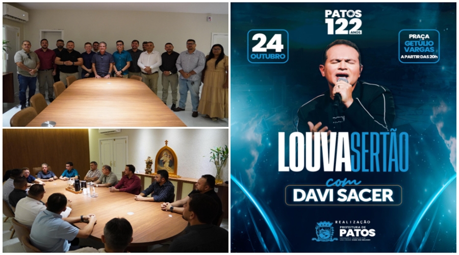 A celebração acontecerá no próximo dia 24 de outubro, uma sexta-feira, a partir das 20h, na Praça Getúlio Vargas, em alusão ao aniversário de 122 anos da cidade de Patos. O público poderá prestigiar um grande show com o cantor gospel Davi Sacer, um dos maiores nomes da música cristã no Brasil.