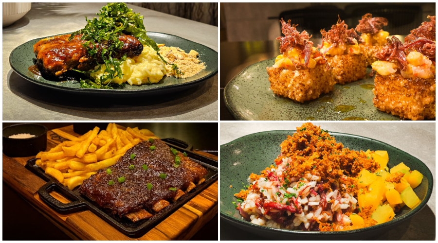 Outro destaque é a Costelinha Suína ao Barbecue de Rapadura, cozida por seis horas no sous-vide e servida com um risoto de queijo de manteiga com nata — um casamento entre técnica moderna e ingredientes do sertão.
