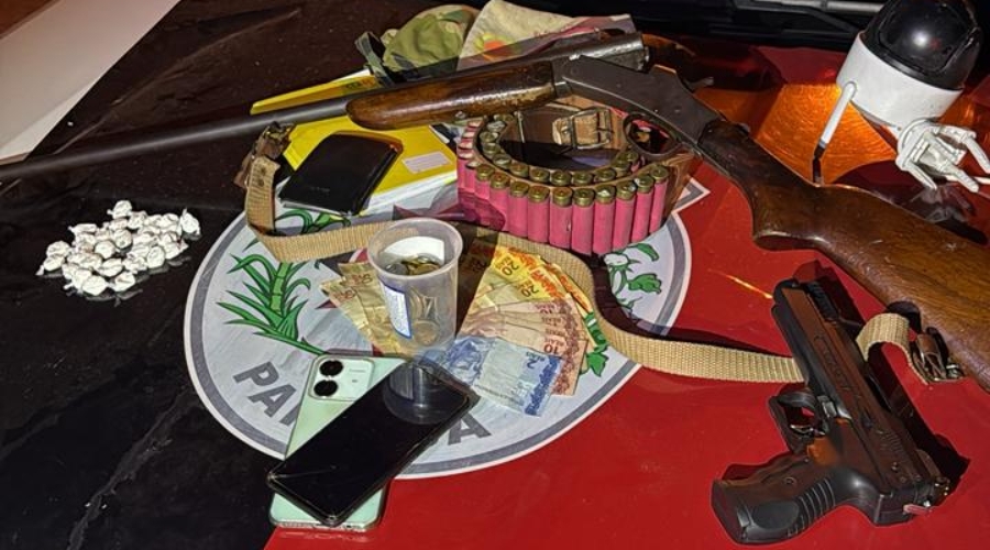 Neste sábado (13), a Polícia Militar, através da 3ª Companhia do 12º Batalhão, apreendeu uma espingarda calibre 28, munições, 30 porções de substância semelhante à cocaína e um simulacro de pistola. A ação de combate ao tráfico de drogas ocorreu no loteamento Portal em São Bento.