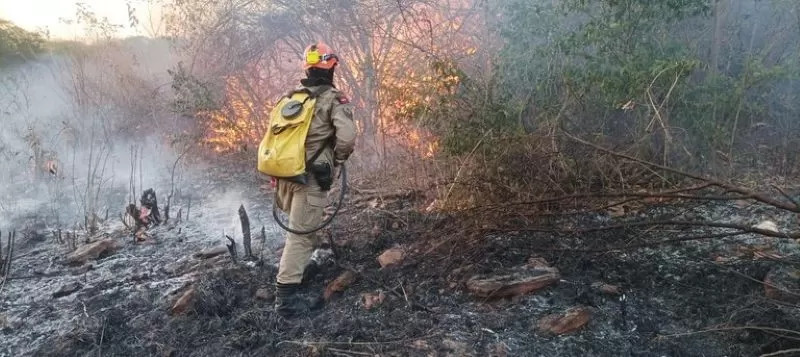 O combate ao fogo na área de mata tem sido difícil devido à falta de acesso. Os bombeiros estão caminhando a pé com equipamentos pesados, mochilas com água e enfrentando adversidades para conter os focos.