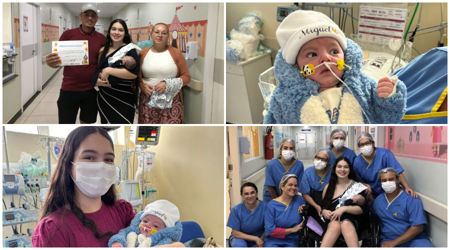 Miguel foi para casa na companhia da mãe e da avó, Paula Andréa, que também agradeceu a equipe pelo cuidado com o neto. “Hoje é um dia abençoado, me emociono até de falar, porque foram dias difíceis. Eu achei que ia perder o meu neto, mas Miguel foi um guerreiro, muito forte, que com as orações da família e o pensamento positivo da equipe maravilhosa deste hospital, se recuperou bem e hoje vai para casa conosco, cheio de vida e esperto”, completou.