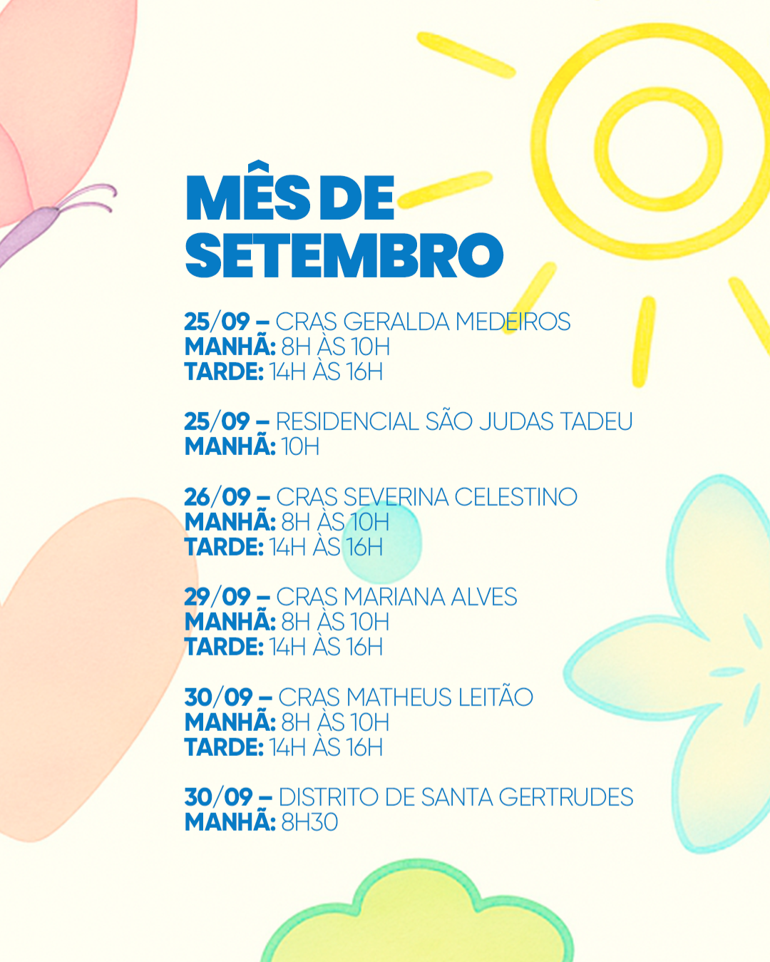 • 25/09 – CRAS Geralda Medeiros