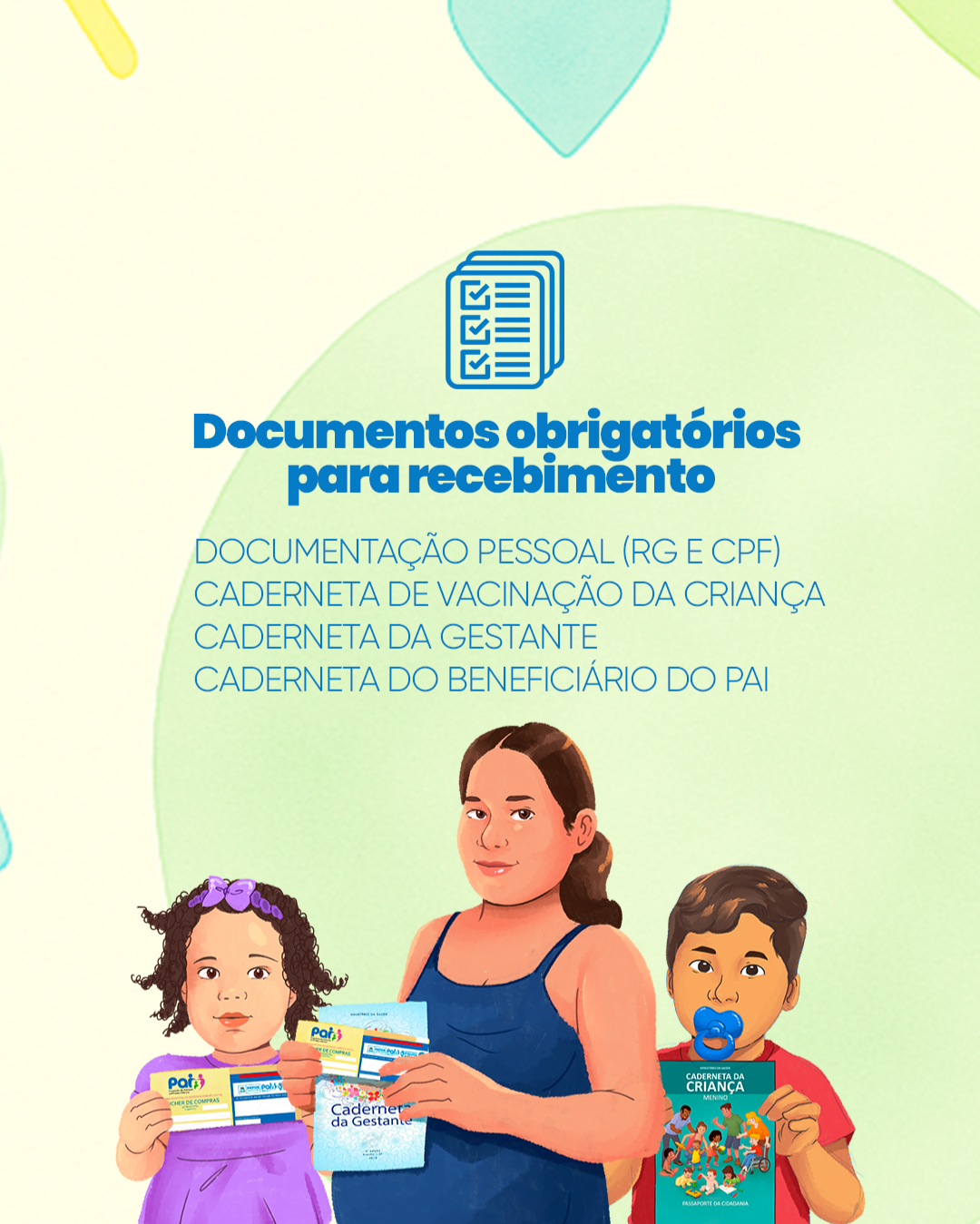 Compareça no dia e horário do seu território com todos os documentos para garantir o recebimento do Cartão do PAI.