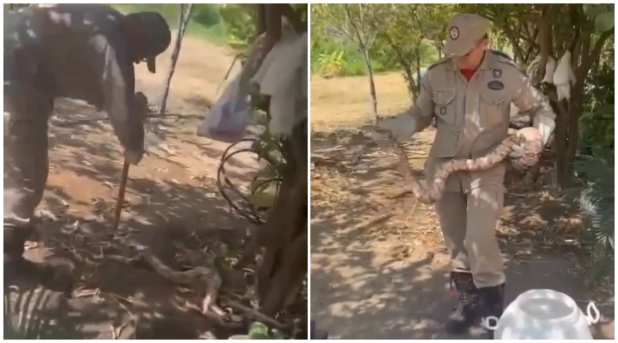 A serpente foi capturada com segurança pela guarnição e devolvida ao seu habitat natural.