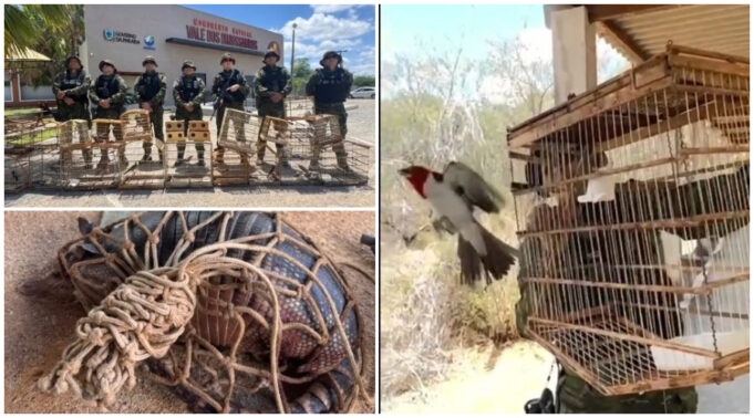 Durante todo o dia de hoje, sábado, 20 de setembro de 2025, a Polícia Militar Ambiental realizou fiscalizações na região do Sertão da Paraíba, abrangendo as cidades de Sousa e Cajazeiras. Durante as diligências, na zona rural do município de Bernardino Batista, foi constatada a manutenção irregular de animais silvestres em cativeiro. No local, foram apreendidos um tatu-peba e doze aves da fauna silvestre. Também foram encontrados apetrechos de caça, uma carabina de pressão calibre 5.5 e uma espingarda de calibre indefinido, ambas utilizadas para a caça.
