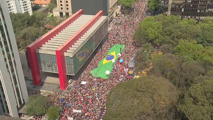 247 – Manifestantes que participam do ato contra a PEC da Blindagem e a anistia aos golpistas do 8 de janeiro estenderam uma grande bandeira do Brasil na Avenida Paulista, em São Paulo. A iniciativa é uma resposta aos apoiadores do ex-presidente Jair Bolsonaro (PL) que utilizaram um bandeirão dos Estados Unidos durante as manifestações no dia 7 de setembro.