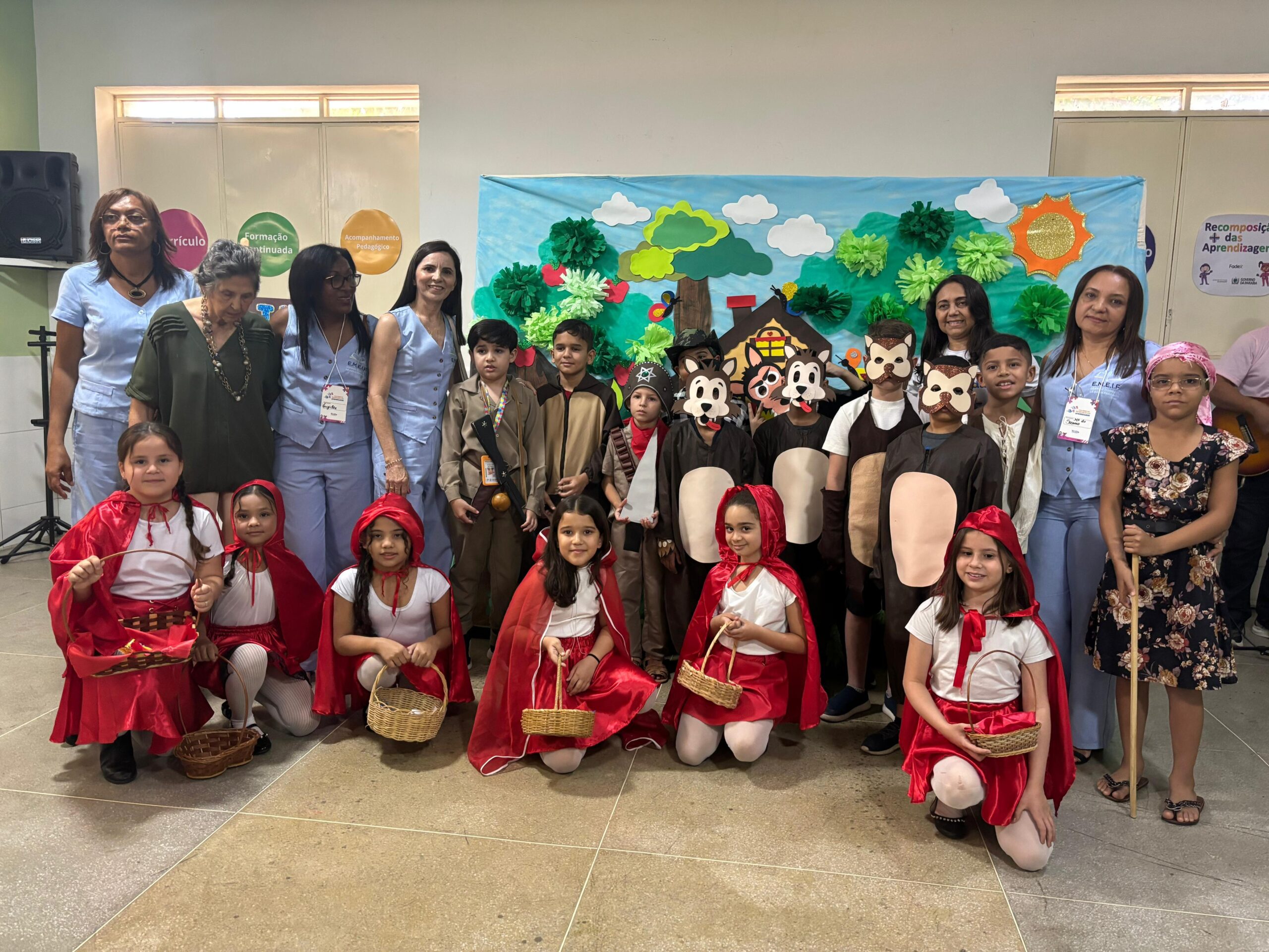 A cidade de Patos foi palco da abertura do III Ciclo da Recomposição das Aprendizagens, reunindo professores, coordenadores e autoridades da educação. O evento iniciou com a encantadora apresentação das turmas do 2º ano da Escola Cônego Joaquim de Assis Ferreira, que levaram ao público uma leitura dramatizada do clássico infantil “Chapeuzinho Vermelho”.