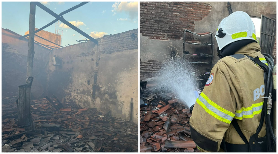De acordo com informações do proprietário, o fogo teve início quando ele utilizava um lança-chamas, atingindo acidentalmente colchões armazenados no interior do depósito e provocando o incêndio.