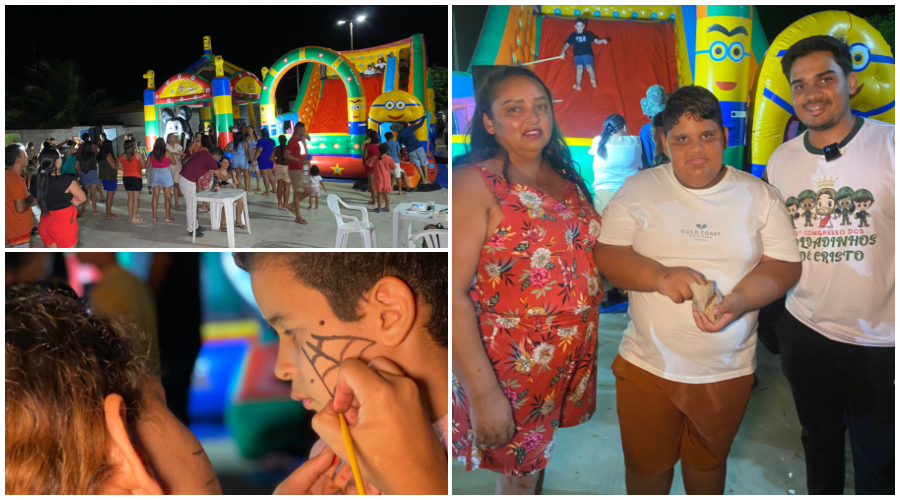 A programação contou com brinquedos, pula-pula, algodão-doce, pipoca e muitas brincadeiras, garantindo momentos de lazer e felicidade para as crianças do distrito.