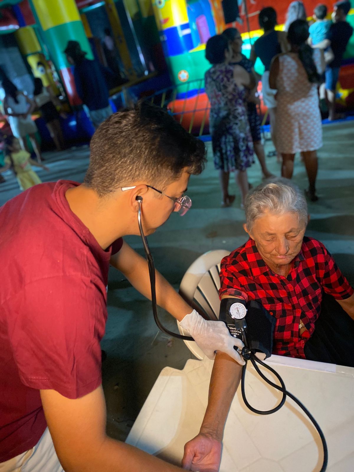 Além disso, foi realizada uma ação de saúde com aferição de pressão arterial e testes de glicemia, com o objetivo de conscientizar os pais e toda a comunidade sobre a importância de cuidar da saúde, fortalecendo o bem-estar físico e espiritual de todos os presentes.