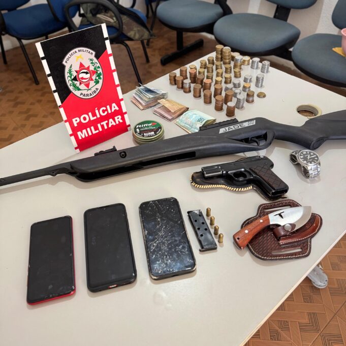 Na manhã desta sexta-feira (24), as guarnições da 2ª Cia/3º BPM realizaram uma ação que resultou na prisão de suspeitos e na apreensão de armas, dinheiro e diversos objetos roubados durante um roubo ocorrido no centro da cidade de Malta, na Região Metropolitana de Patos.