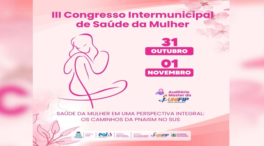 A Prefeitura de Patos, por meio da Secretaria Municipal de Saúde, se prepara para realizar nos dias 31 de outubro e 1º de novembro o III Congresso Intermunicipal de Saúde da Mulher, no Auditório Master da UNIFIP. O evento traz como tema central “Saúde da Mulher em uma Perspectiva Integral: os Caminhos da PNAISM no SUS” e tem como objetivo fortalecer a atenção à saúde da mulher em todas as fases da vida.