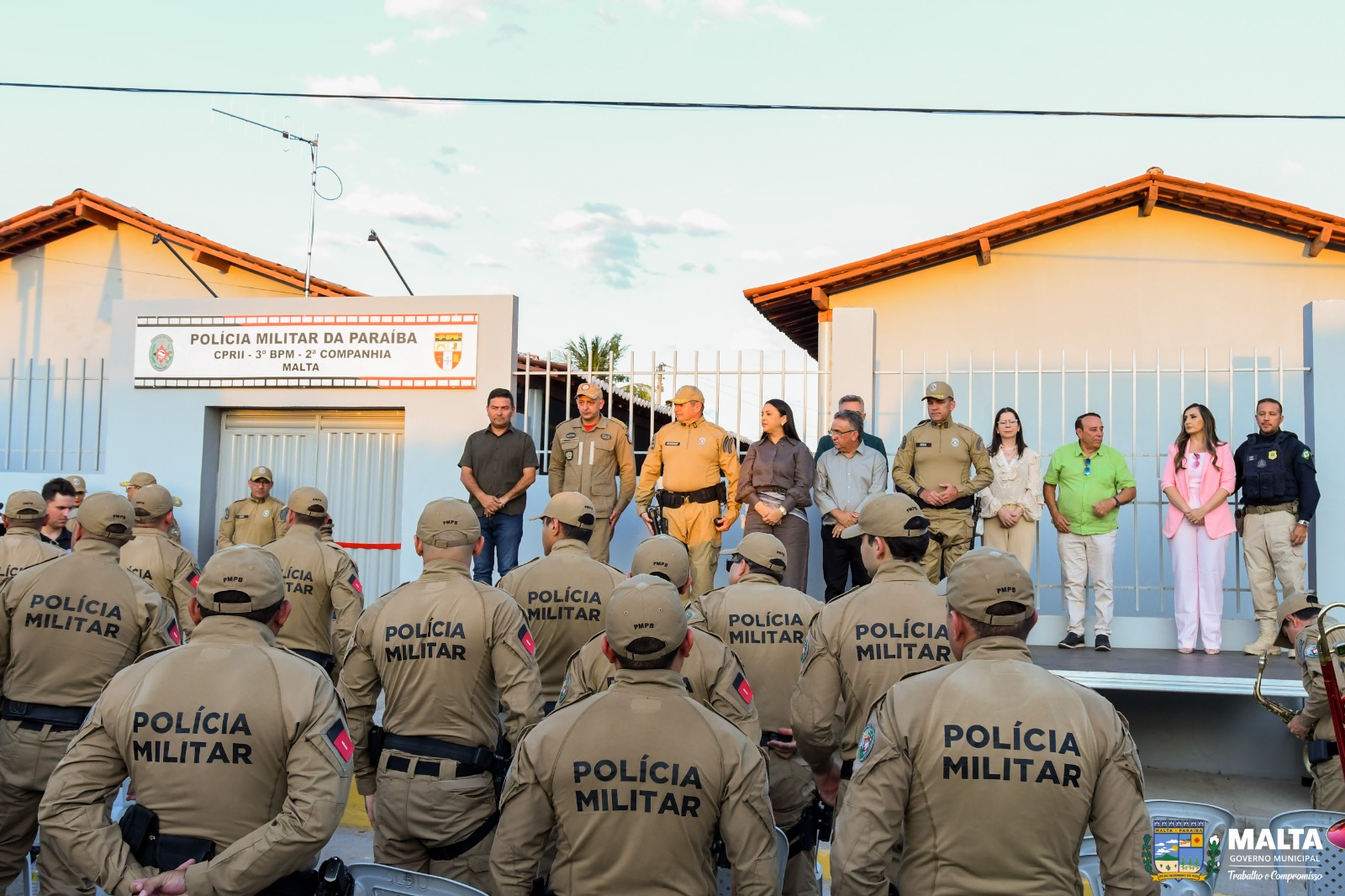 O município de Malta, na Região Metropolitana de Patos, viveu um momento histórico na tarde desta sexta-feira, 31 de outubro, com a inauguração oficial da nova sede da 2ª Companhia do 3º Batalhão de Polícia Militar. A solenidade reuniu autoridades municipais, regionais e estaduais, reforçando o compromisso coletivo com a segurança pública e a presença institucional da Polícia Militar na região.