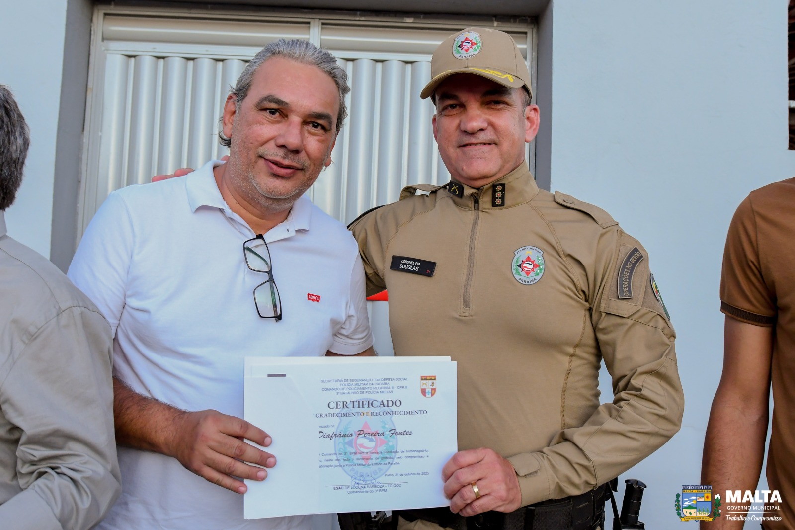 O sargento Eilzo Ferreira, que é um dos destaques operacionais do batalhão, também ressaltou a importância da conquista para o trabalho da Polícia Militar. Segundo ele, a nova sede fortalece as condições de atuação e amplia a capacidade de resposta. Ele destacou que segurança se faz com estrutura, planejamento e dedicação. Para o sargento, cada avanço entregue à corporação representa também mais proteção para a população, pois o resultado final desse investimento é sentido diretamente nas ruas, no patrulhamento, na prevenção e no cuidado com as famílias de Malta e região.