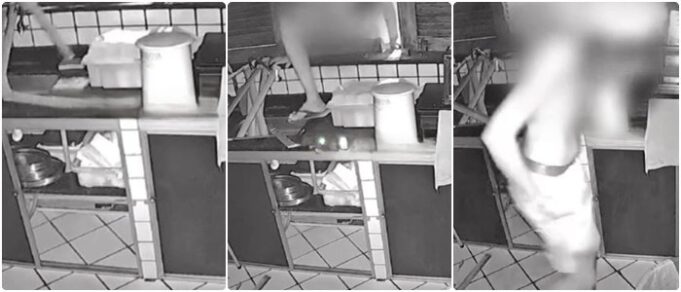 Nas imagens, o suspeito aparece arrombando uma janela para ter acesso ao interior do imóvel. Após entrar, ele vasculha a cozinha, chega a procurar algo embaixo da pia e, em seguida, abre a geladeira, de onde retira algumas garrafas antes de deixar o local.
