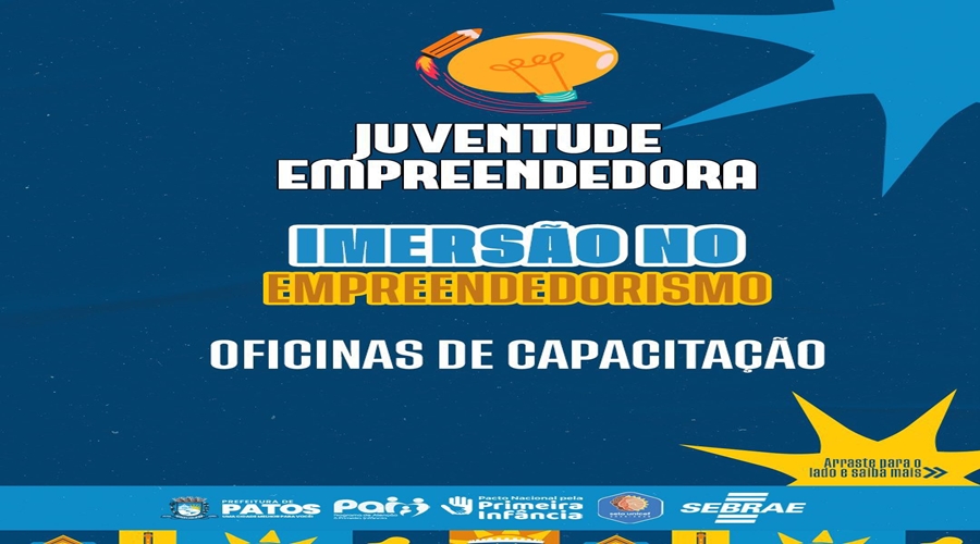 A Prefeitura de Patos, por meio da Secretaria de Juventude, abriu as últimas vagas para o programa “Juventude Empreendedora – Imersão no Empreendedorismo”, uma oportunidade gratuita voltada a jovens que desejam transformar ideias em negócios e aprender mais sobre planejamento, estratégia, finanças e marketing.