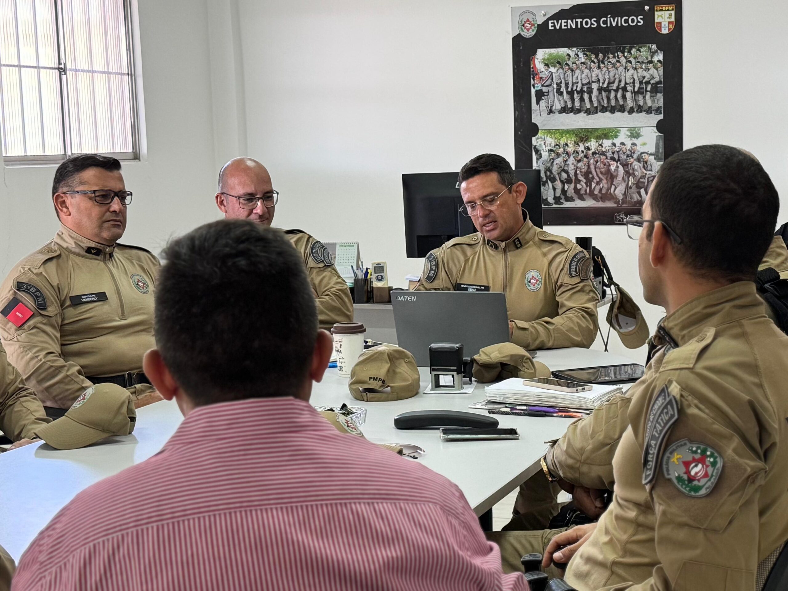 Na manhã desta quarta-feira (12), os oficiais do 3º BPM participaram de uma reunião de planejamento administrativo e coordenação operacional, realizada na antiga sede do CPR II, onde atualmente funciona temporariamente o comando do 3º BPM, em Patos.