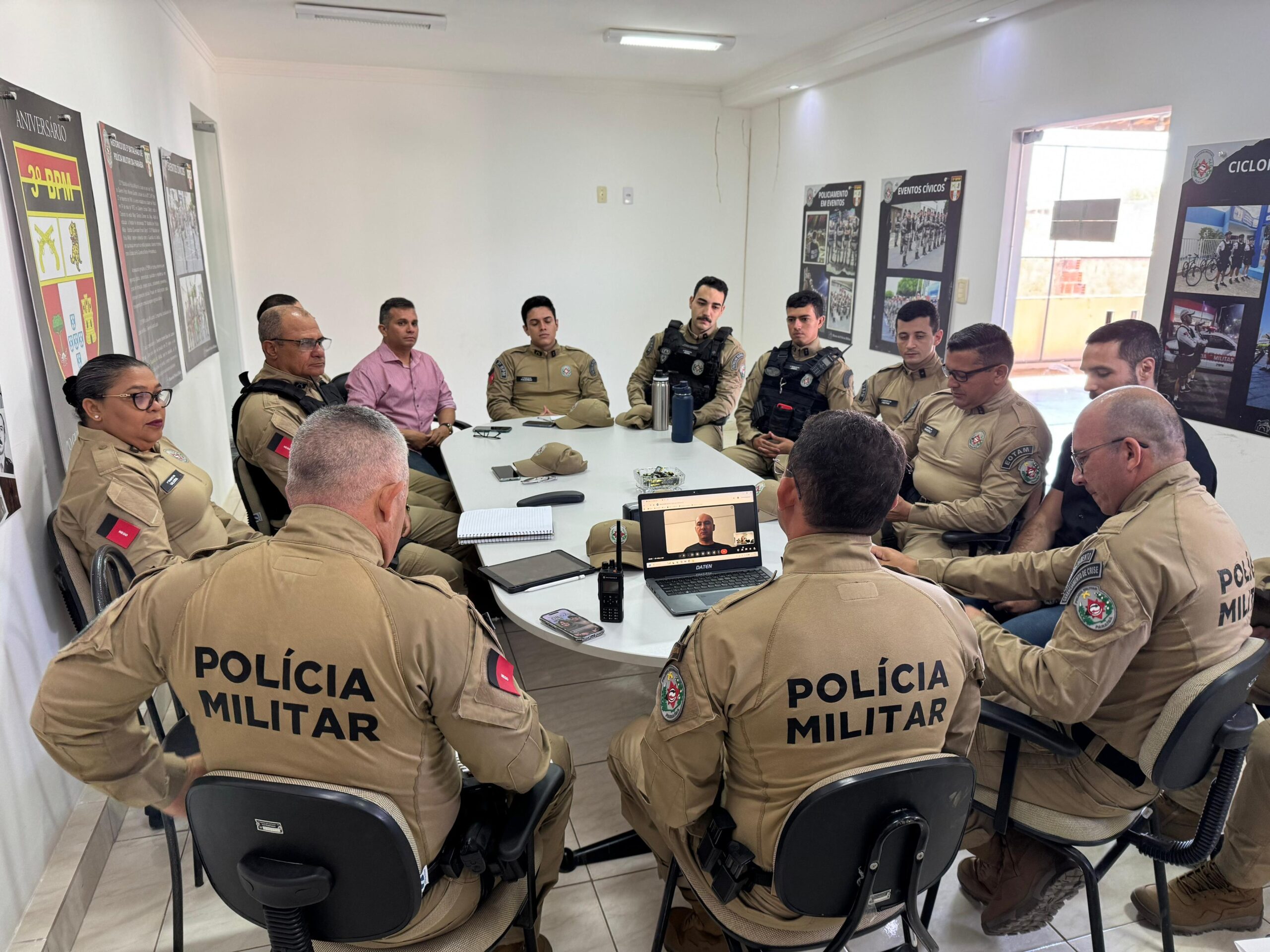 A reunião contou com a presença do Comandante do 3º BPM, TC Esaú, e do Subcomandante, Maj Dillery, reunindo as seções da Unidade e comandantes de companhia para análise e definição de diretrizes estratégicas. A pauta contemplou o planejamento das ações de segurança pública para a área da 15ª AISP e as tratativas específicas relacionadas as seções administrativas, além disso foram avaliados indicadores de segurança e áreas prioritárias de atuação no policiamento comunitário.