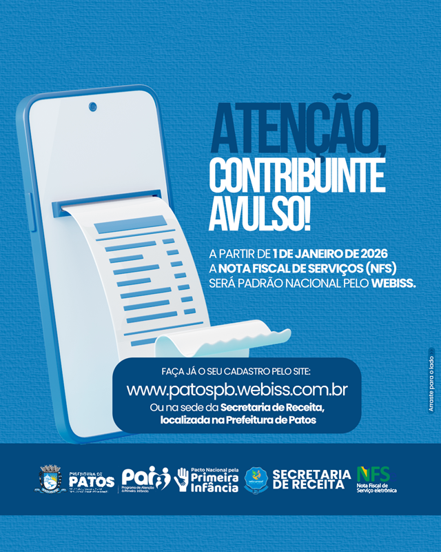 A Prefeitura de Patos, por meio da Secretaria de Receita, iniciou nesta semana, o processo de cadastramento dos contribuintes avulsos do ISS em cumprimento à Lei Complementar nº 214/2025, conhecida como Lei do IBS. A legislação determina que, a partir de 1º de janeiro de 2026, todas as Notas Fiscais de Serviços emitidas no país deverão seguir o novo padrão nacional.