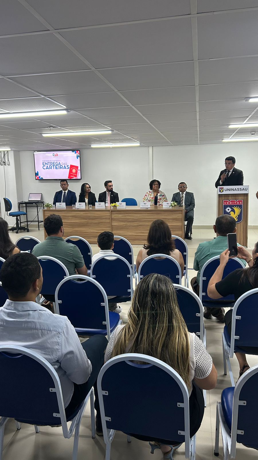 Durante a programação, o presidente Claodon Bezerra entregou a carteira da OAB a advogada, Aryane Ferreira de Freitas Santos. O ato foi testemunhado por familiares e o público em geral, presente no auditório.