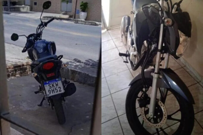 A motocicleta levada pelo suspeito é uma Honda Fan 160, ano 2024, cor cinza metálica, placa SKW9H52.