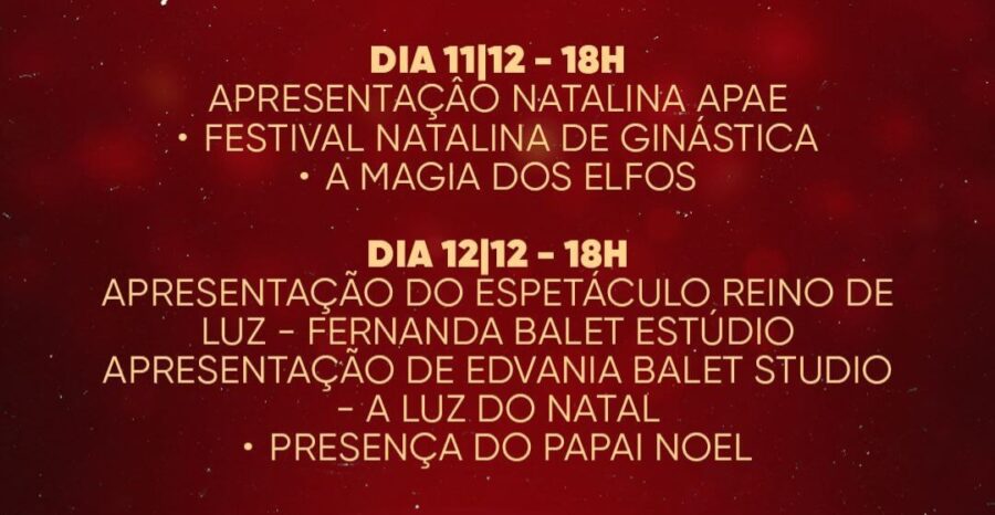A Prefeitura de Patos anunciou, por meio das redes sociais da Secretaria de Cultura, Turismo e Esporte (SECULTE), a programação cultural do Natal da Gente 2025, que será realizada na Concha Acústica, localizada na Praça Edivaldo Motta.