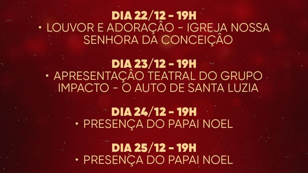 Com início na noite de 8 de dezembro e encerramento na noite de Natal, 24 de dezembro, a programação contempla diversos estilos de apresentações, como as tradicionais cantatas natalinas, peças teatrais, apresentações musicais e danças.