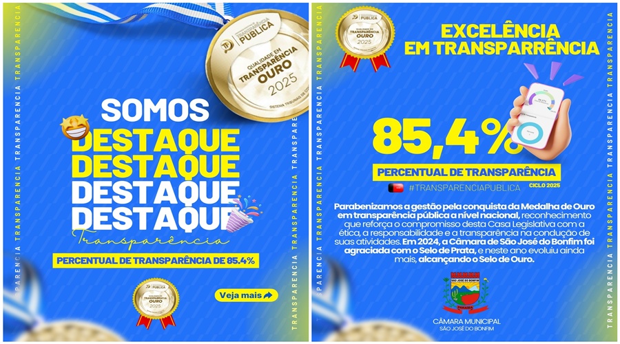 A Câmara Municipal de São José do Bonfim, na Região Metropolitana de Patos, conquistou o Selo Ouro do Programa Nacional de Transparência Pública da ATRICON, atingindo 85,4 no índice de conformidade nos critérios avaliados.