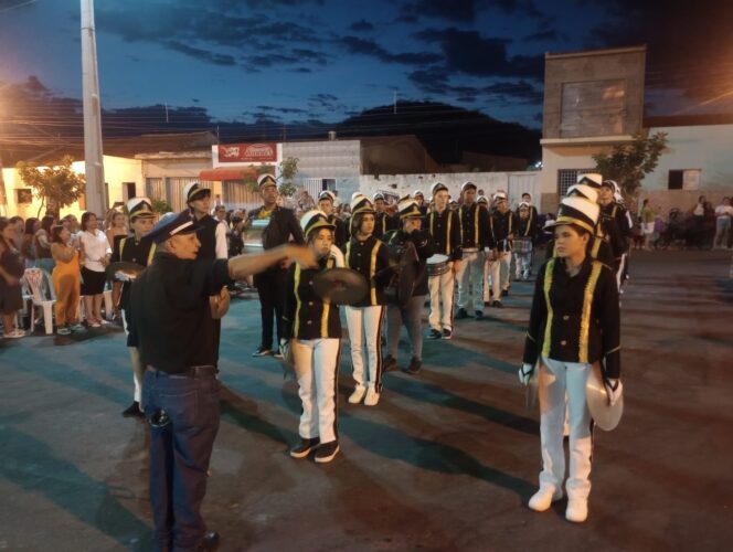 Na sequência, apresentou-se a Fanfarra Estudantil Antônio Cabral de Almeida, criada para homenagear um sanfoneiro da terra, valorizando os talentos locais. O grupo é formado por alunos da Escola Estadual, com o apoio da Prefeitura Municipal.