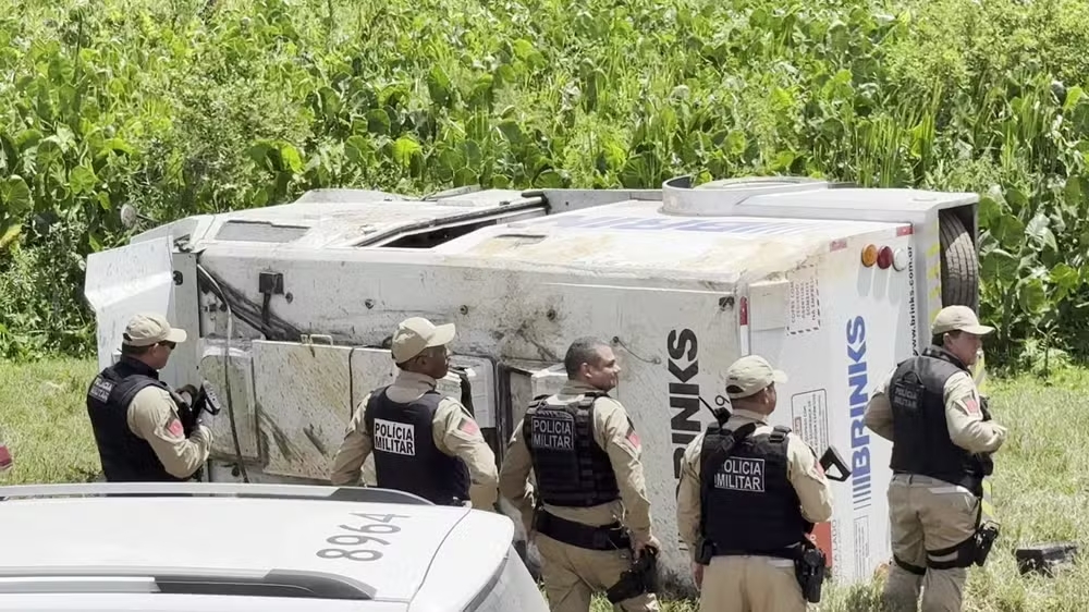 Um carro-forte capotou na manhã deste sábado (20), na PB-034, entre o distrito de Mata Redonda e a cidade de Alhandra, no Litoral Sul da Paraíba. O motorista perdeu o controle do veículo ao fazer uma curva na rodovia e acabou parando em uma área de vegetação.