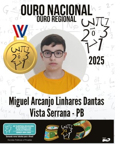 Vista Serrana, dezembro de 2025 – O jovem Miguel Arcanjo, de apenas 13 anos, estudante da rede municipal de Vista Serrana, conquistou a medalha de ouro nacional na 20ª Olimpíada Brasileira de Matemática das Escolas Públicas (OBMEP), ficando entre os 40 melhores estudantes do país em sua categoria. O feito histórico consolida Vista Serrana como referência em matemática e coloca o município no seleto grupo de localidades que formam grandes talentos científicos do Brasil.