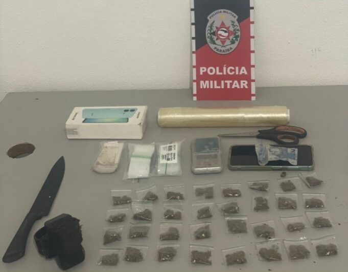 Durante o patrulhamento ostensivo, o indivíduo foi localizado nas proximidades de uma residência e ainda tentou evadir-se, sendo prontamente contido pela guarnição. No local, após averiguações, foram apreendidos 32 papelotes de substância análoga à maconha, além de uma balança de precisão, embalagens para acondicionamento de entorpecentes, objetos perfurocortantes, aparelho celular, tornozeleira eletrônica e outros materiais associados à prática ilícita.