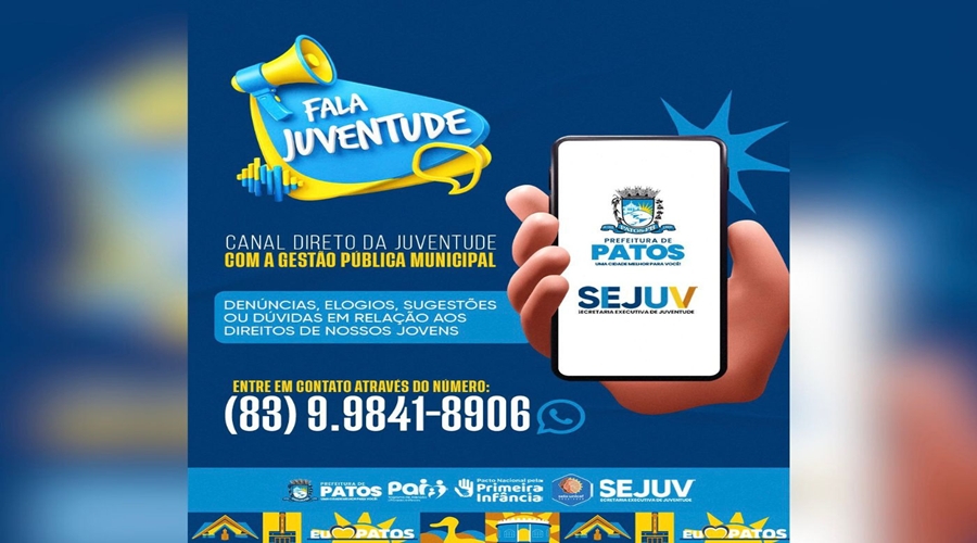 A Prefeitura de Patos, por meio da Secretaria Executiva de Juventude, lançou o programa Fala Juventude, uma nova ferramenta de atendimento virtual que utiliza inteligência artificial e outras tecnologias para ampliar o diálogo entre o poder público e a juventude patoense.