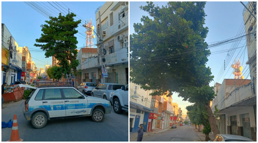 A Secretaria de Meio Ambiente e Desenvolvimento Sustentável (SEMADS) realizou, nesta sexta-feira (9), a retirada preventiva de uma árvore com risco iminente de queda na Rua Rui Barbosa, no Centro de Patos. A ação contou com o apoio da Superintendência de Trânsito e Transporte (STTrans) e teve como objetivo garantir a segurança de pedestres, motoristas e do patrimônio público e privado.