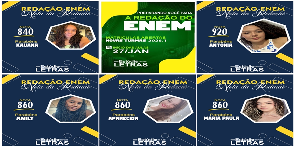 Veja alguns dos alunos do Estúdios das Letras que foram destaques na redação do Enem 2025:
