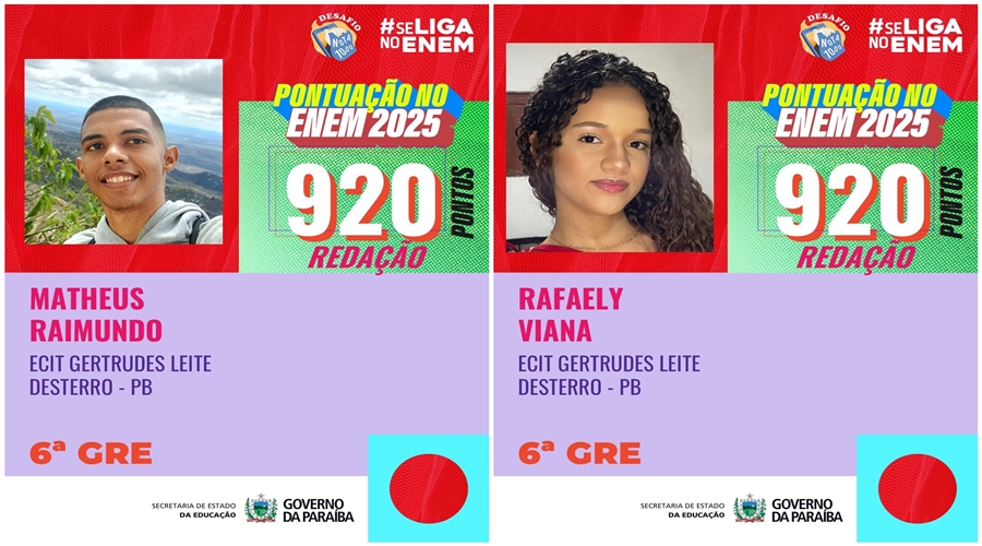Além dos estudantes em destaque, a ECIT Gertrudes Leite comemora também o desempenho positivo de outros alunos e alunas da unidade escolar, que obtiveram pontuações significativas na redação e nas demais áreas do exame. Esses resultados demonstram o empenho coletivo da comunidade escolar e o impacto do acompanhamento pedagógico contínuo desenvolvido ao longo da trajetória formativa.
