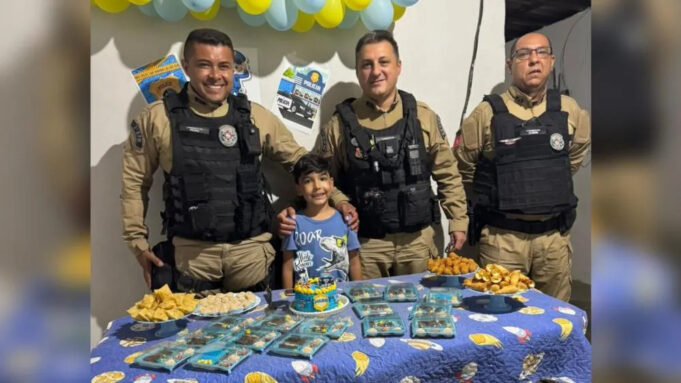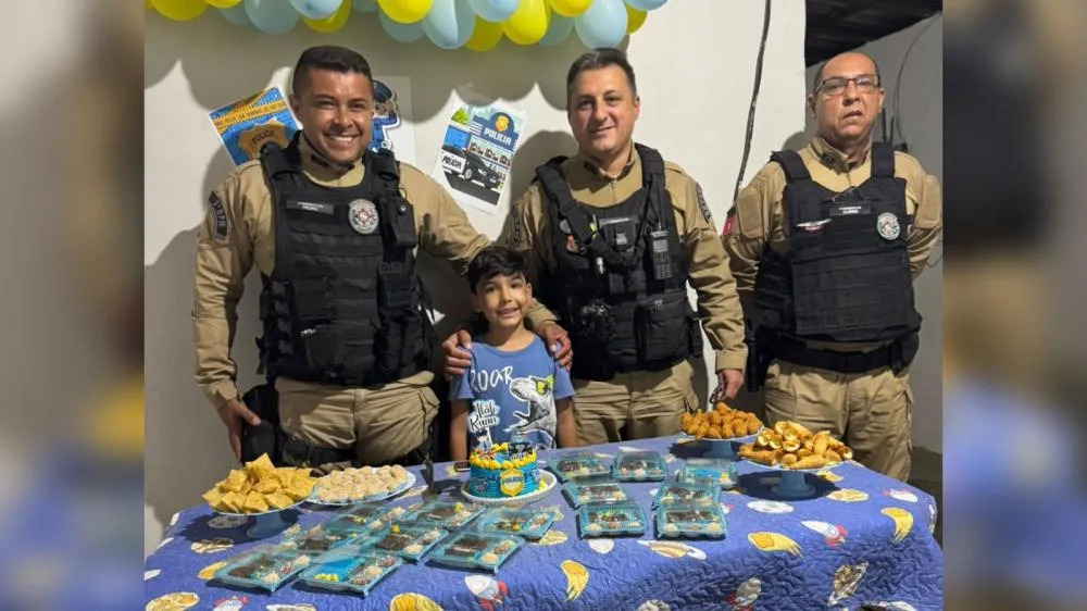 Segundo informações, o aniversariante é admirador da Polícia Militar e contou com a presença de uma guarnição da 1ª Companhia do 3º BPM, após convite feito por sua mãe, Fernanda Layse Santos. A equipe atendeu ao chamado da família e participou do momento festivo.
