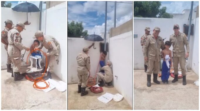 O Corpo de Bombeiros Militar da Paraíba, através do 4º BBM, foi acionado para uma ocorrência delicada envolvendo uma criança de 7 anos que ficou presa no espaço estreito entre um poste metálico e uma parede.