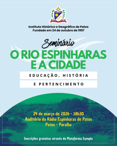 Promovido pelo Instituto Histórico e Geográfico de Patos (IHGPatos), o encontro reunirá pesquisadores, professores, estudantes e membros da sociedade civil interessados em discutir o papel do rio na formação da identidade local.