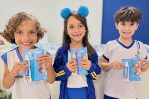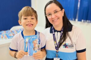 A equipe formada por profissionais também forneceu instruções sobre métodos de escovação e distribuiu kits de higiene, contendo escova e creme dental, como parte da estratégia de fornecimento de insumos para a manutenção dos cuidados diários no ambiente doméstico e escolar.