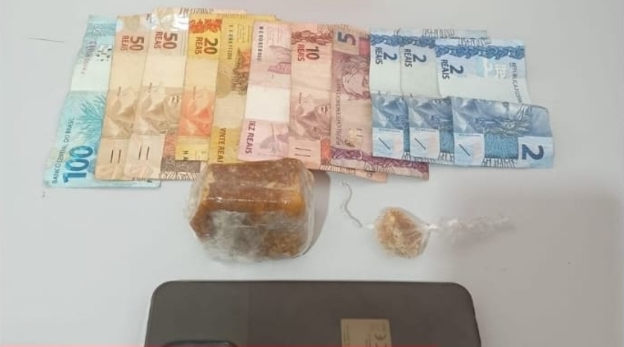 Dando continuidade à ocorrência, as guarnições se deslocaram até um imóvel apontado nas denúncias, onde flagraram uma mulher tentando ocultar porções fracionadas de substância análoga ao crack, além da quantia de R$ 271,00 em espécie, em um compartimento da residência. Também foi apreendido um aparelho celular, possivelmente utilizado na atividade ilícita.