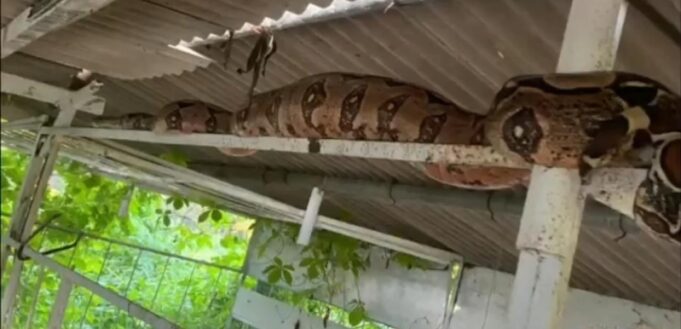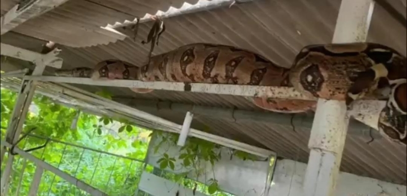 De acordo com o relato, o trabalhador se dirigia ao local para alimentar as galinhas quando se deparou com uma jiboia de aproximadamente 3 metros de comprimento. O animal pertence à família Boidae, grupo de serpentes que não possui veneno, mas utiliza a força muscular para capturar e matar suas presas por asfixia.