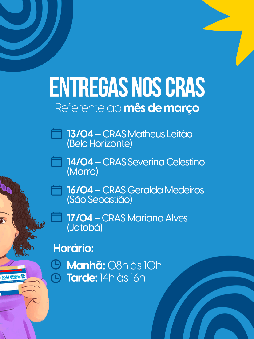 - 17/04 – CRAS Mariana Alves de Oliveira (Jatobá)
