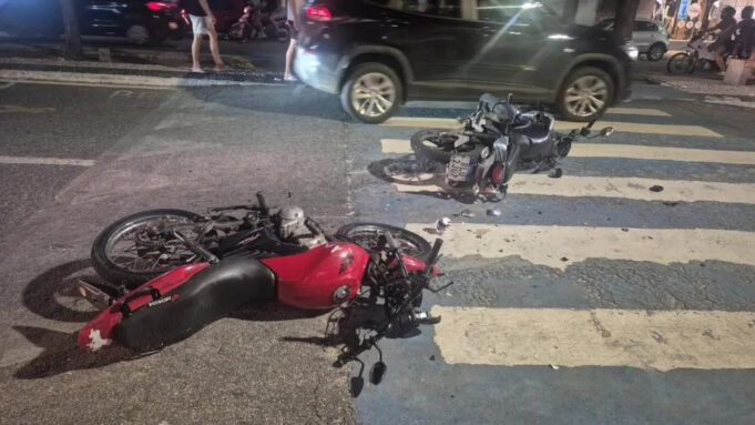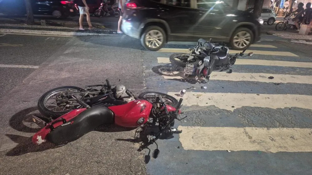 Um sinistro de trânsito envolvendo duas motocicletas foi registrado na noite deste domingo (26), na Rua Epitácio Pessoa, em frente ao banco Itaú, no Centro de Patos.