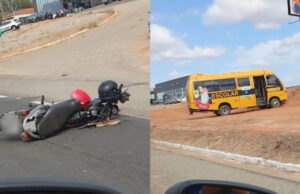 Duas pessoas ficam feridas em acidente envolvendo micro-ônibus e moto na...