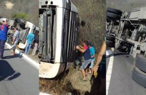 Caminhão tomba na Serra de Santa Luzia e motorista fica preso...
